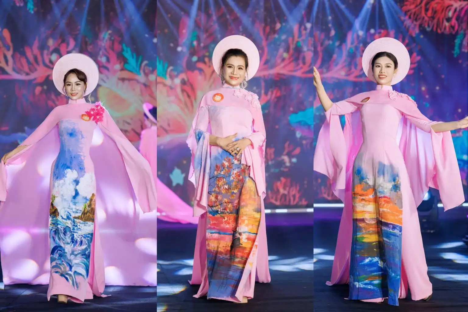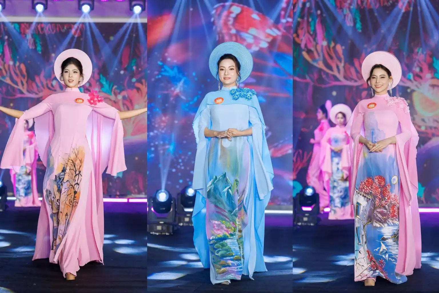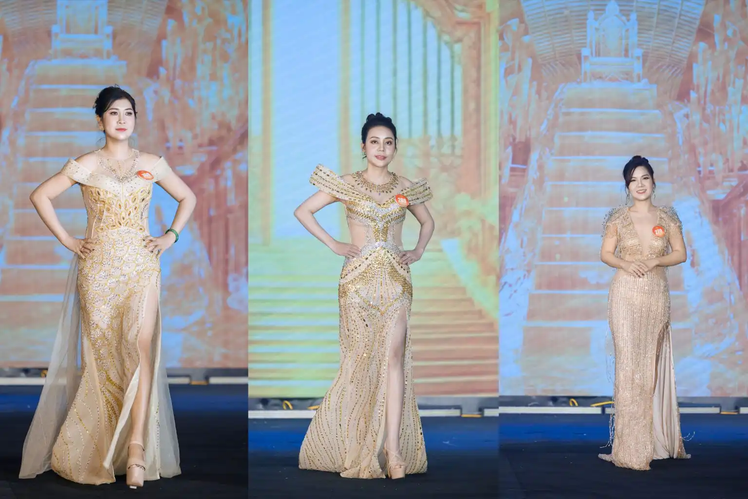 Các thí sinh trong ba phần thi áo dài, công sở và dạ hội.
